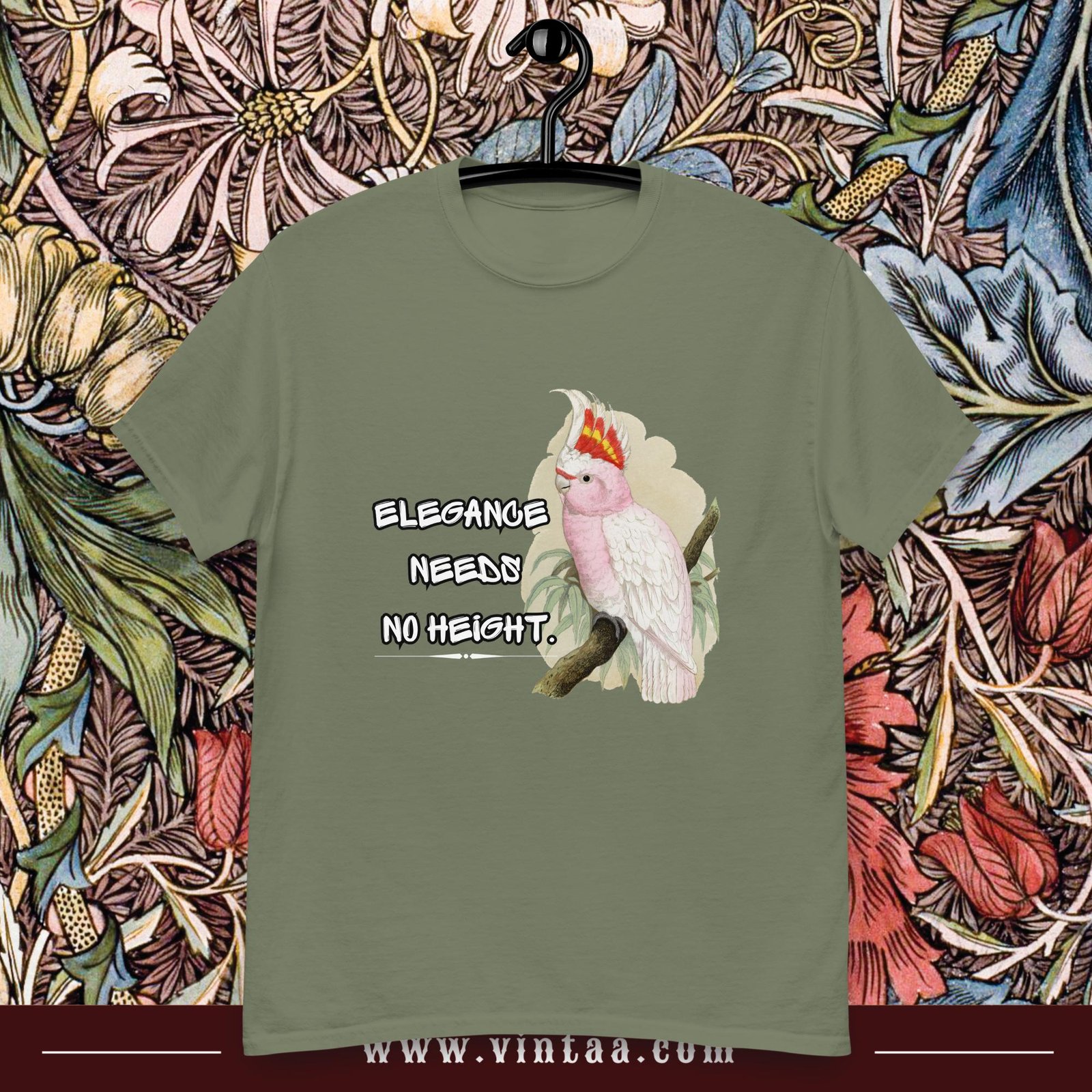 The Elegant White Parrot T-Shirt carries the timeless message: true elegance is not defined by height or grandeur, but by grace and presence. The delicate artwork of a white parrot, pure and refined, reflects inner beauty and quiet confidence.