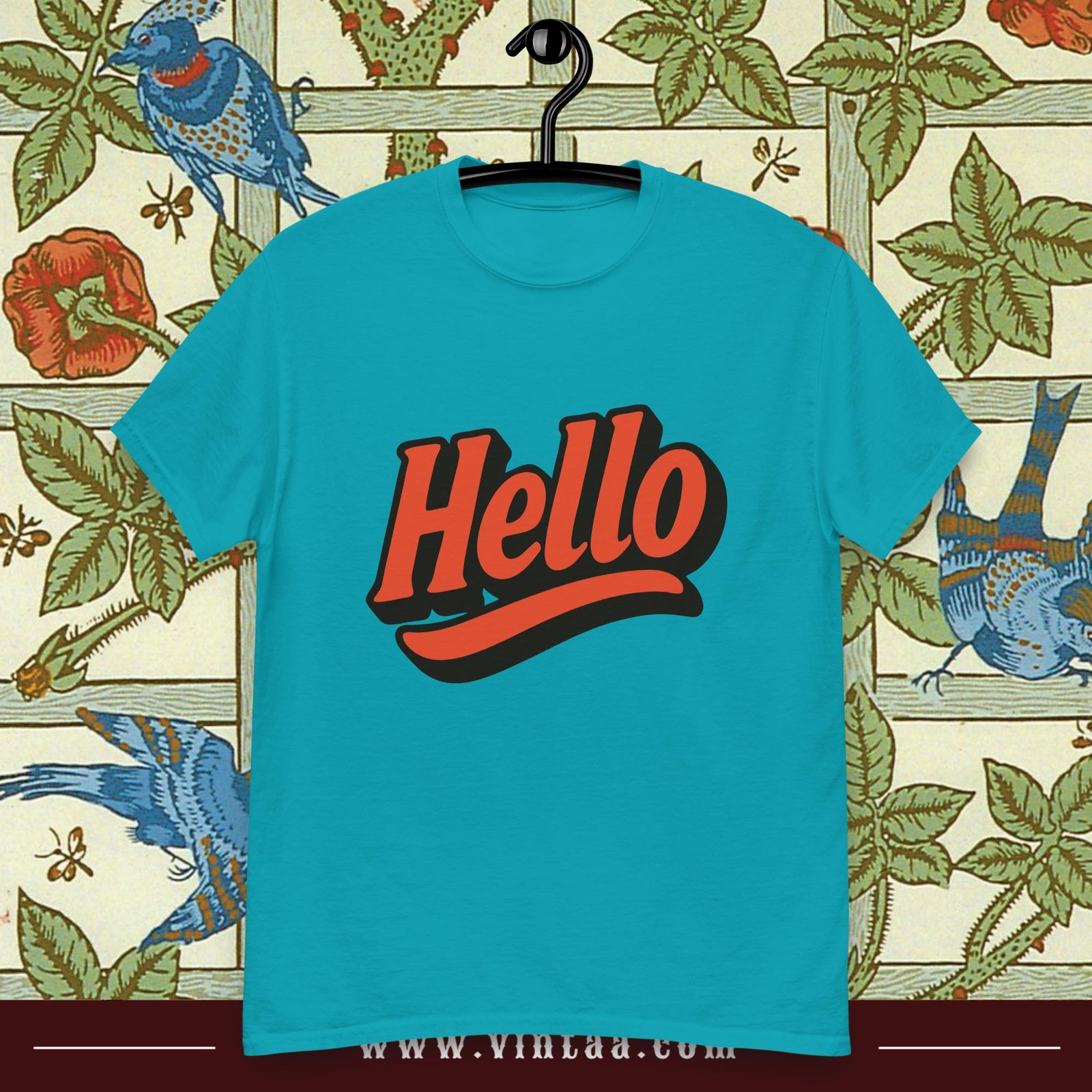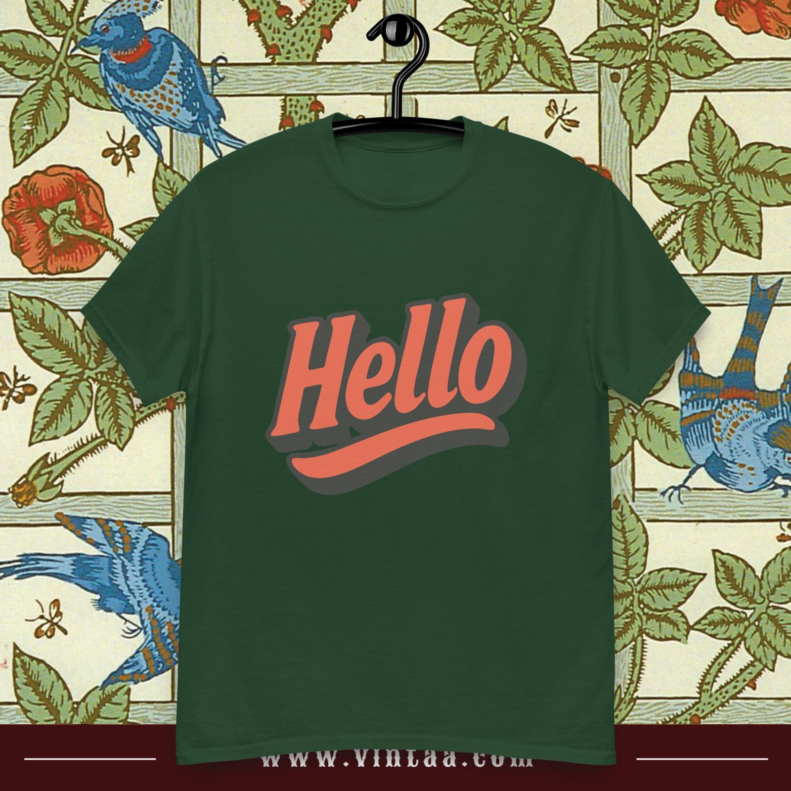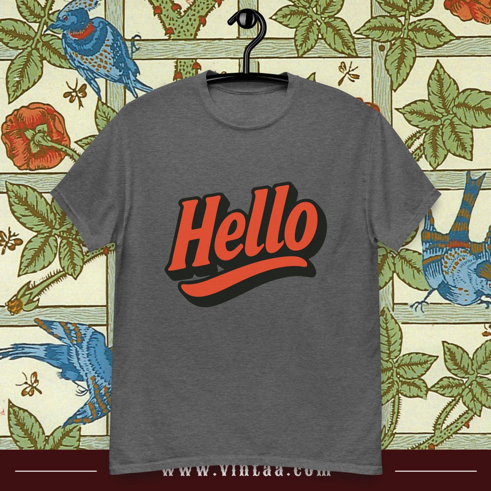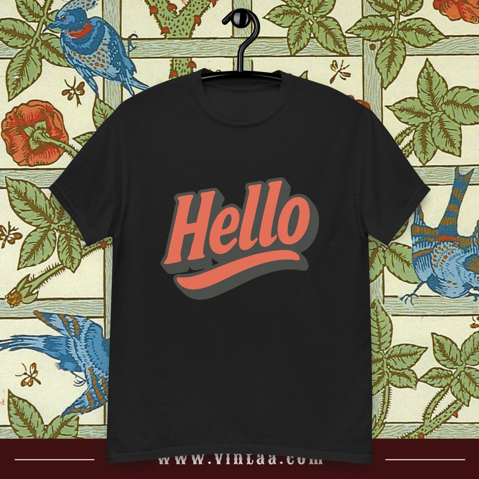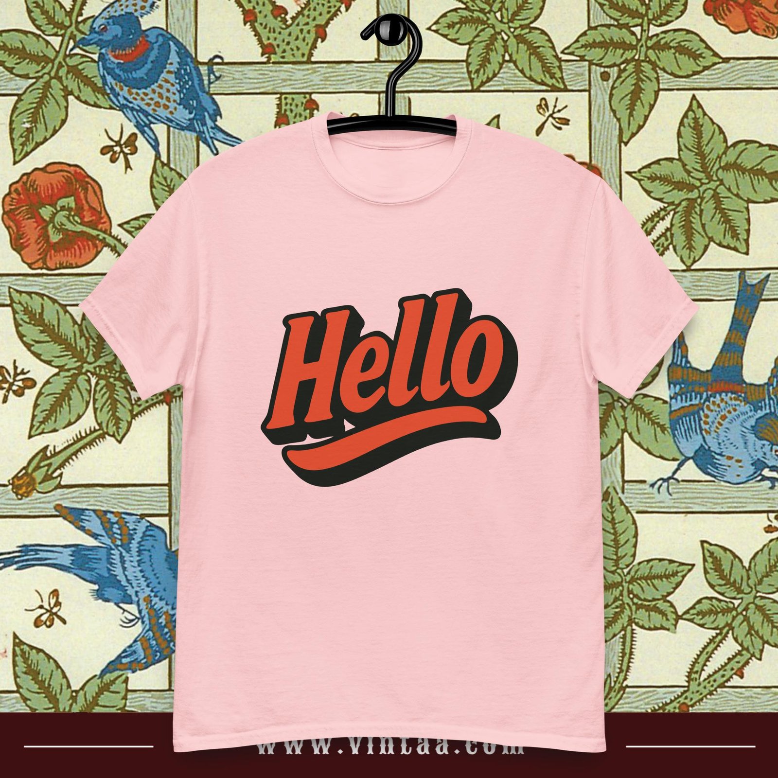 Be the first to review ““Hello” Retro Bold Script T-Shirt – Vintage Street Style Graphic Tee”