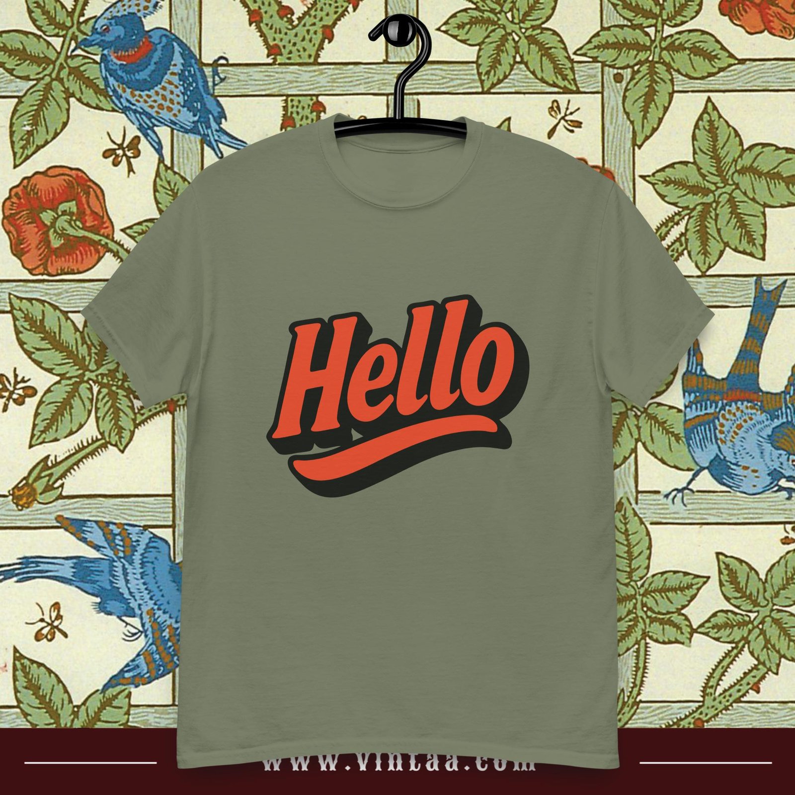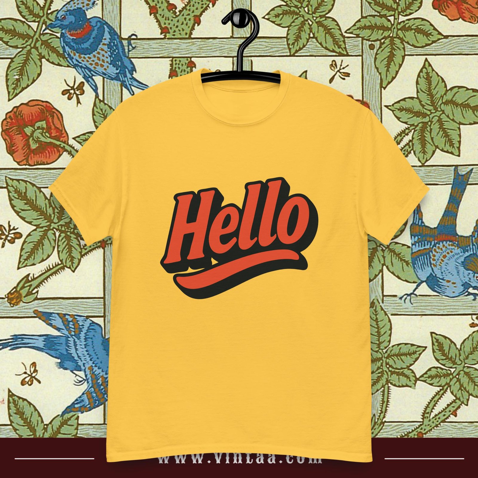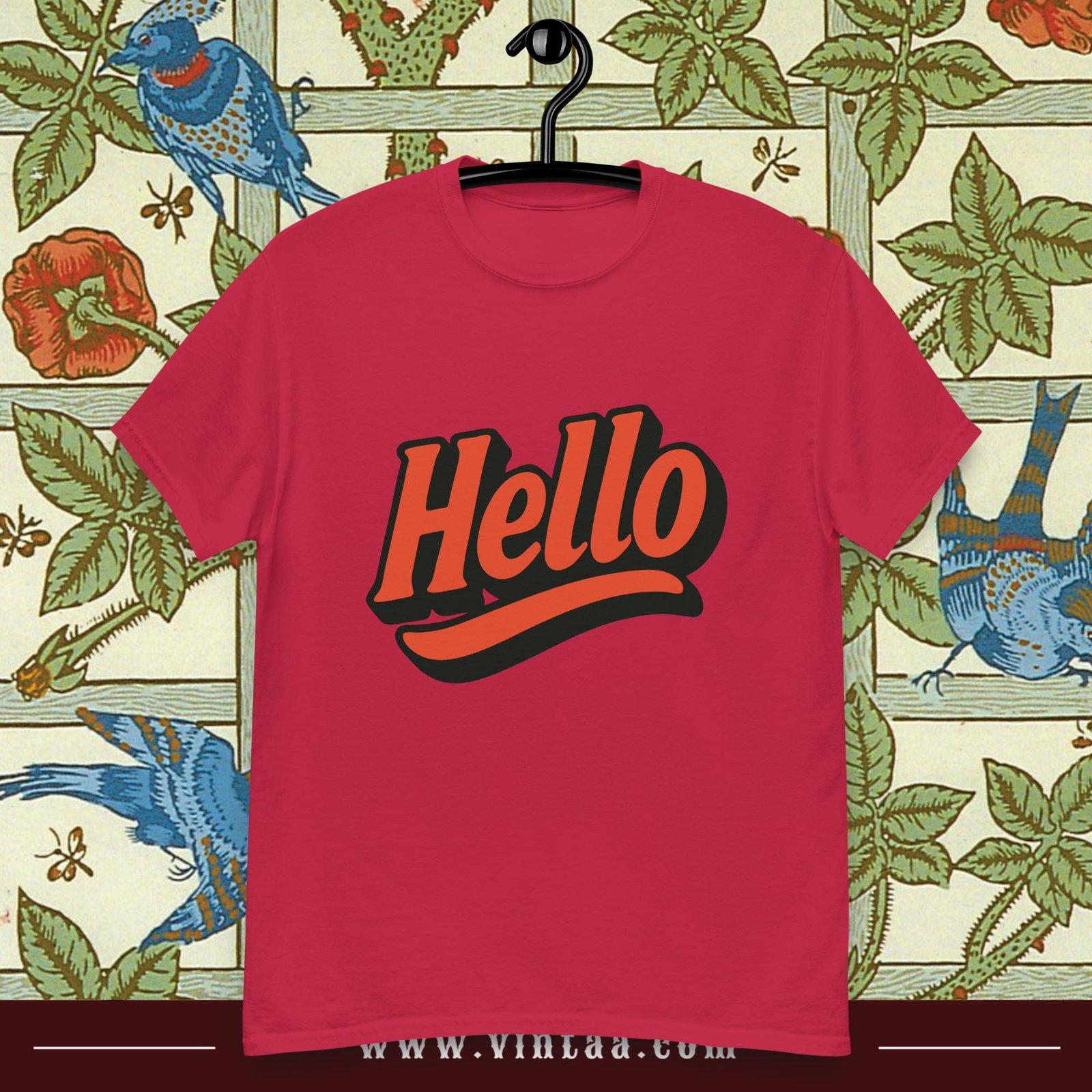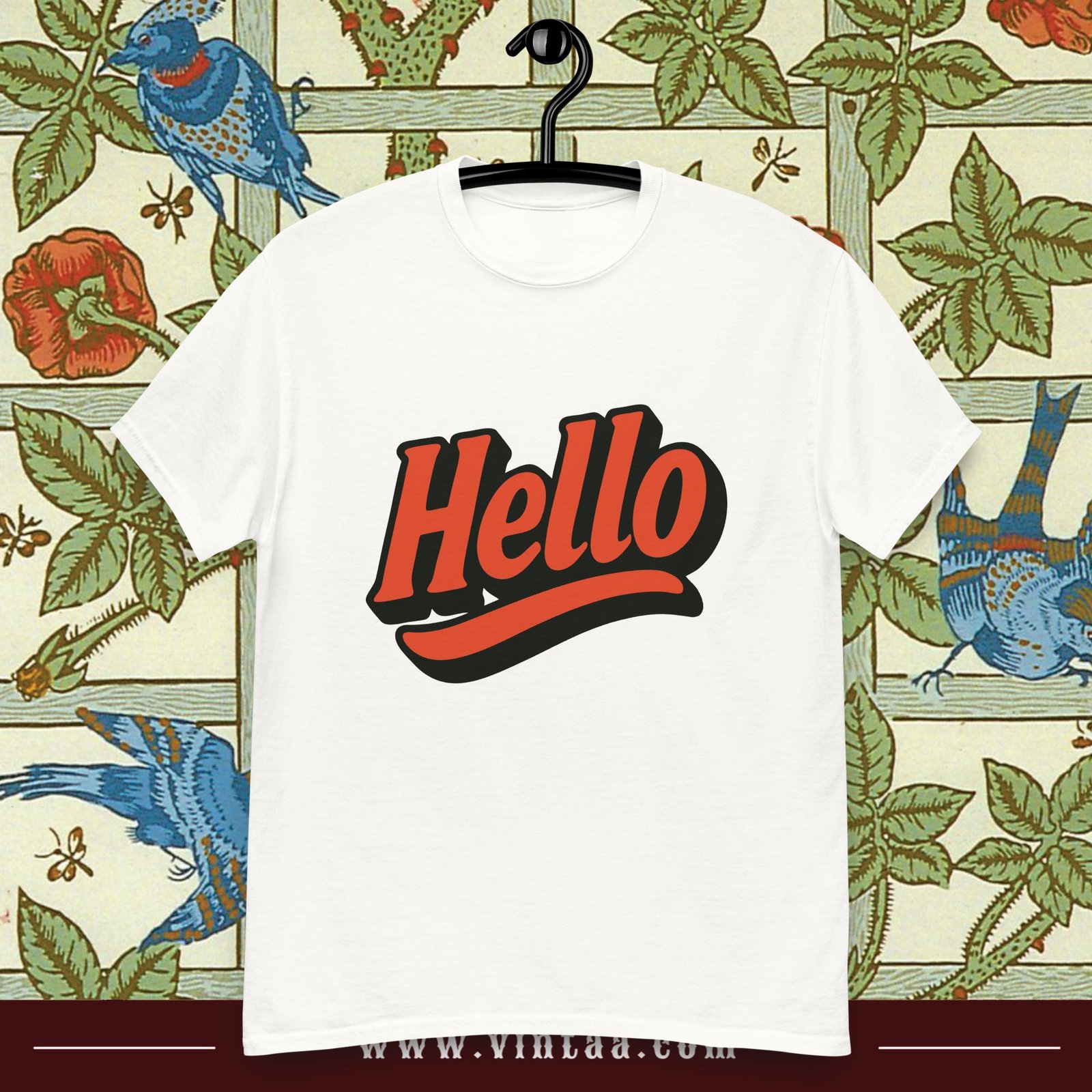 “Hello” Retro Bold Script T-Shirt – Vintage Street Style Graphic Tee