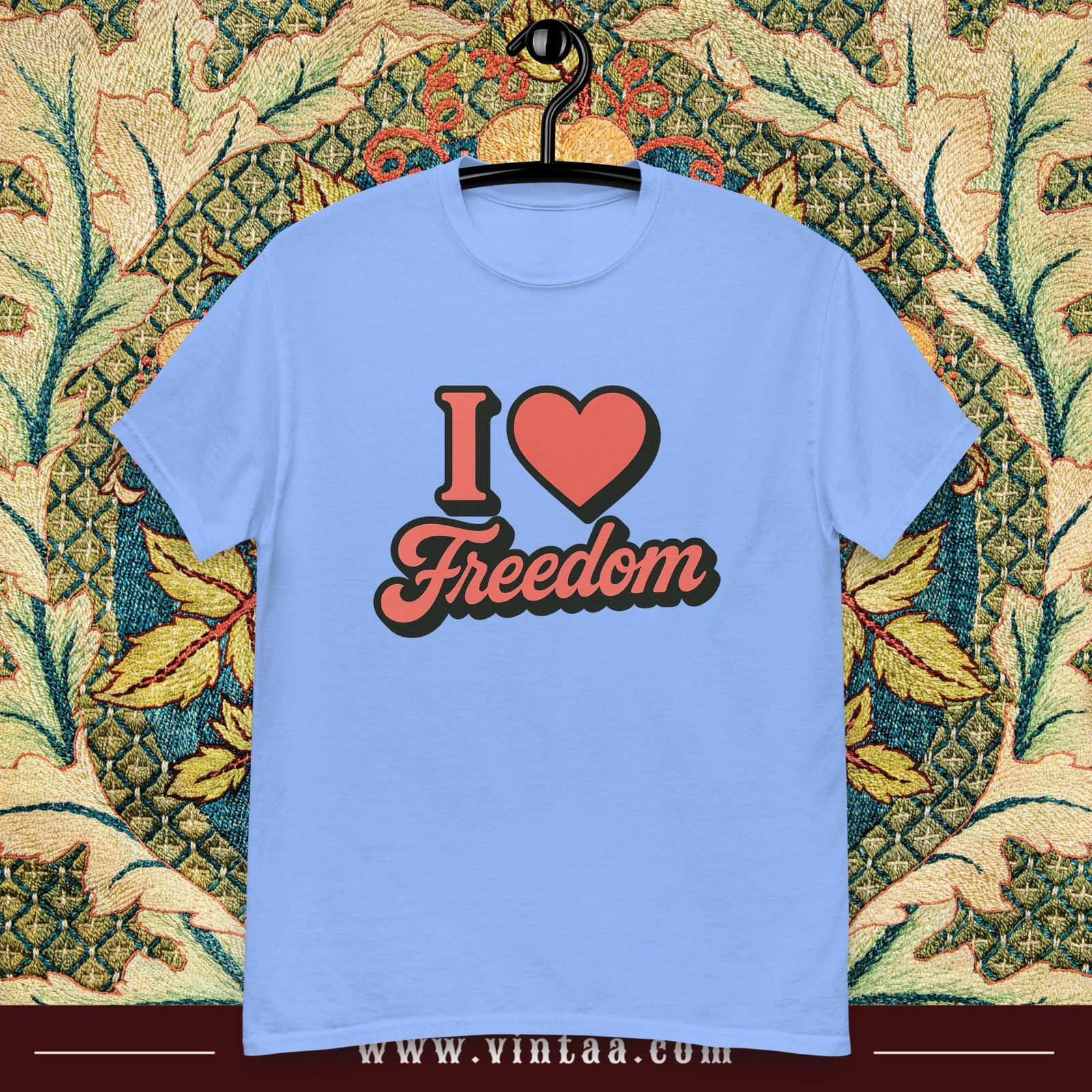 When printed on a Vintage I Love Freedom T-shirt, this artwork becomes more than fashion—it turns into a personal statement. The message of freedom goes beyond politics or society; it symbolizes inner strength, individuality, and the right to live authentically. Wearing an I Love Freedom T-shirt allows anyone to showcase their personality and share a universal value: the love for freedom and independence.